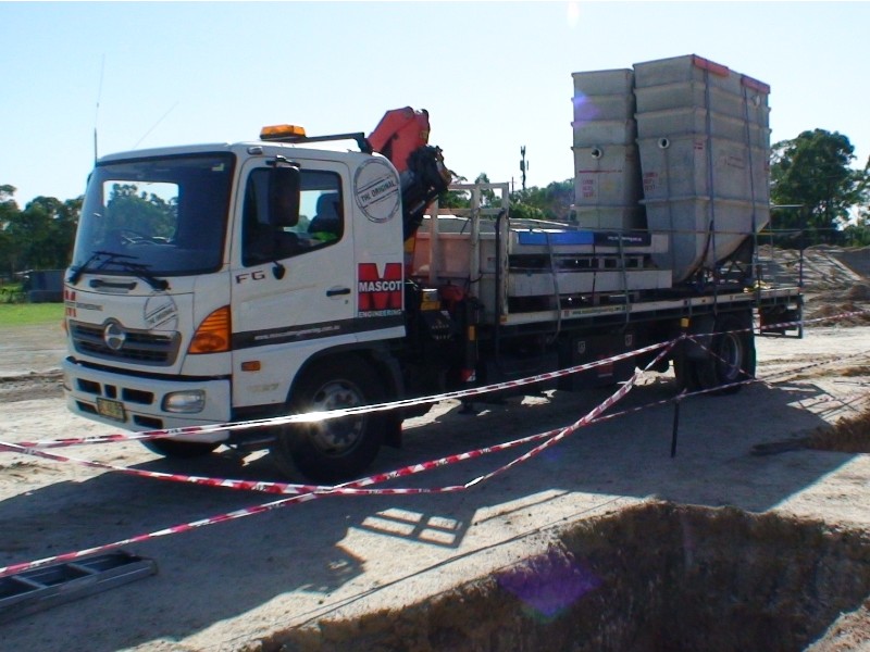 Mascot Engineering Grease Traps, made of high strength and acid resistant Glass Reinforced Concrete (GRC) are lightweight enough to be delivered to site on the one truck, minimising cost and delays in installation for our client.
