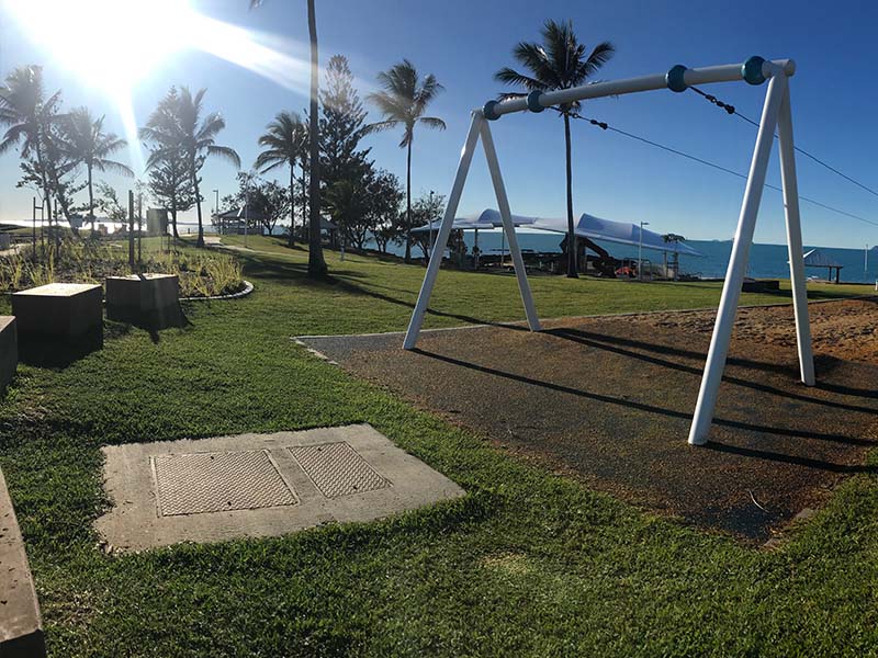 Just 20km south of Yeppoon you’ll find the seaside village of Emu Park, the home of the famous Singing Ship sculpture.  Along the foreshore is the recently upgraded Kerr Park playground, a contemporary playground with a range of equipment for all ages and the right amount of shade.