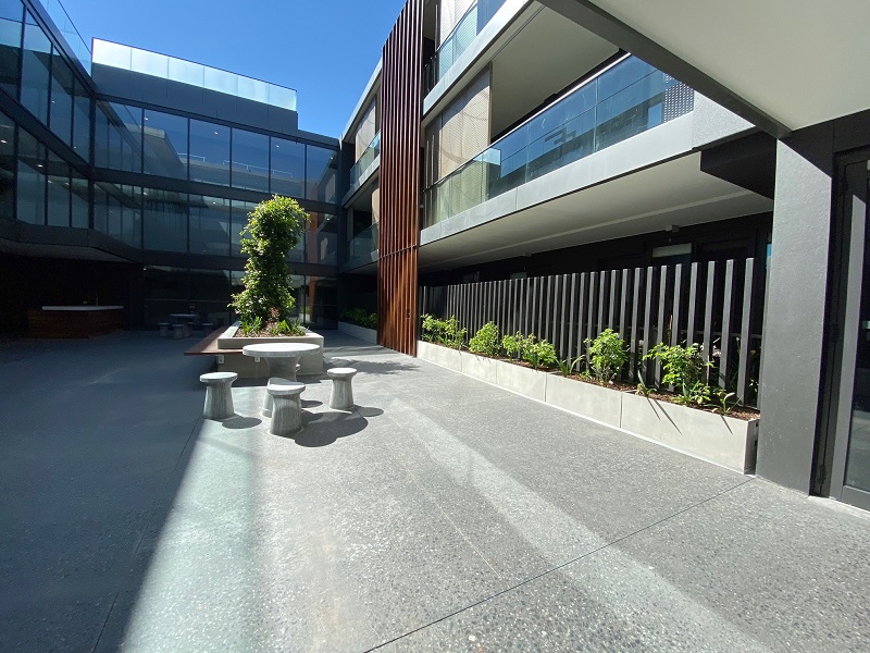 Upon entering this apartment complex, you’re greeted with a vast open communal space open to the elements. The private outdoor area provides residents and visitors with an extension of their living areas complete with BBQ areas and outdoor entertaining.